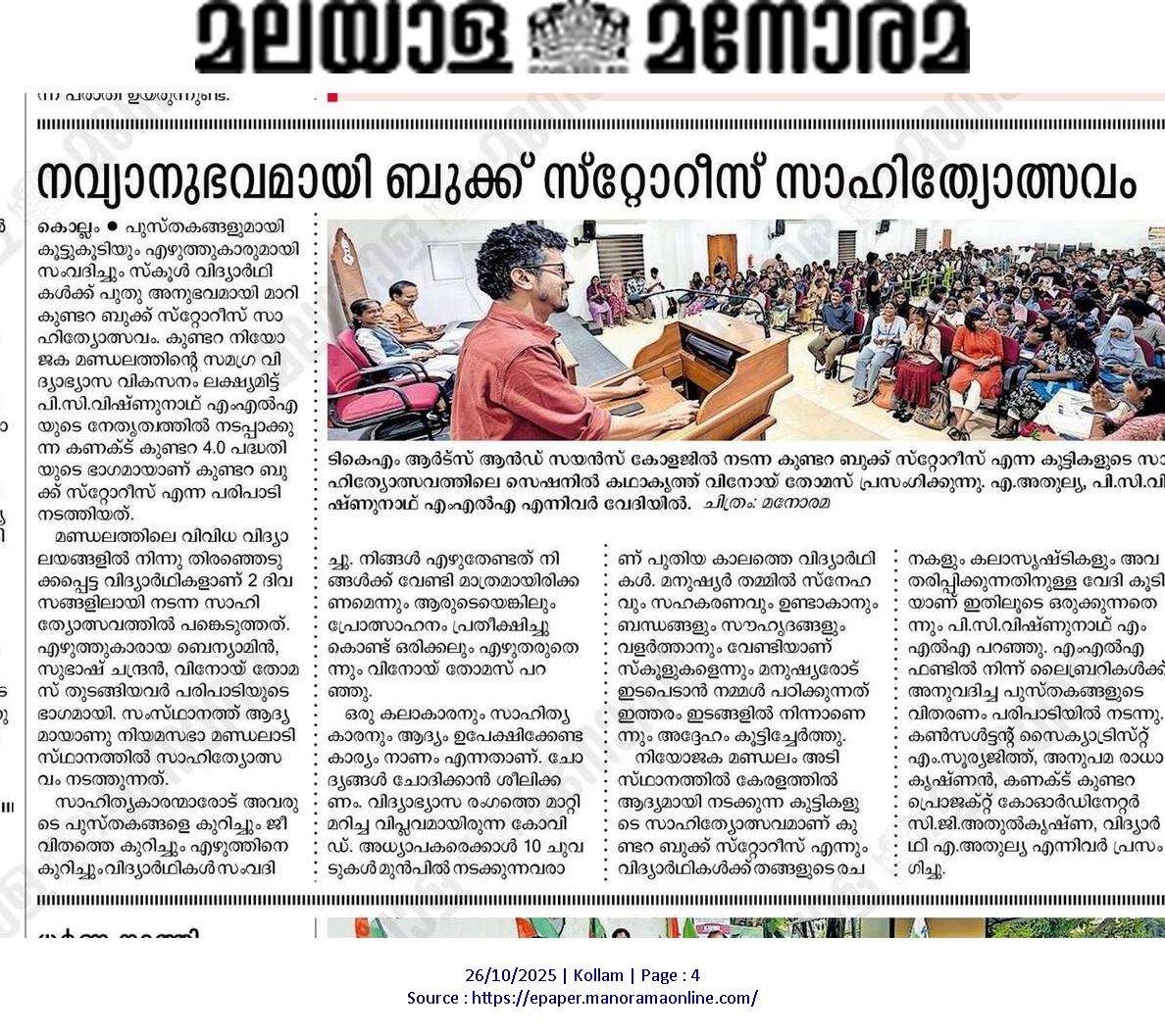 Mayor Shri. M K Varghese led Thrissur Corporation’s Thilakkam project in 2022 to reinforce Thrissur’s UNESCO Learning City status. Thilakkam focused on five pillars: knowledge, happiness, technology, earning, and upskilling, promoting lifelong learning.